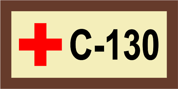 Scott AFB 375 Khaki Background, Brown Border, Red Cross, Black C-130 Text - Pocket Tab 2"