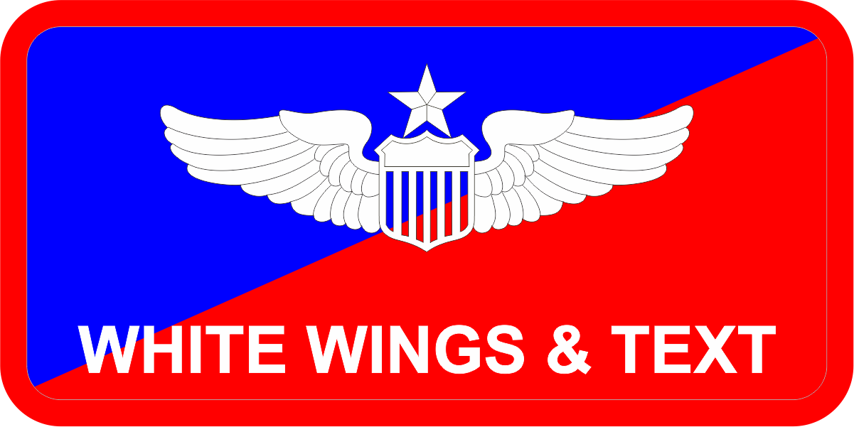 Scott 435 TRS Name Tag - Half Blue, Half Red Background, Red Border, White Wings & Text