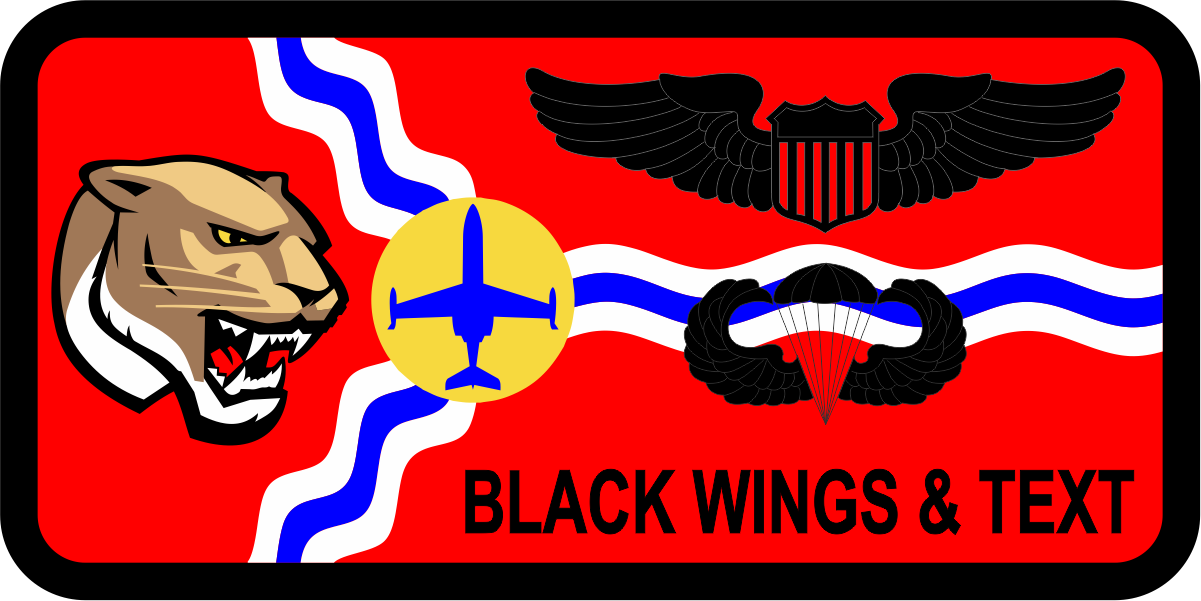 Scott 458 AS Name Tag - Red Background, Black Border, Black Wings & Text. with a Cougar and C-21 Aircraft