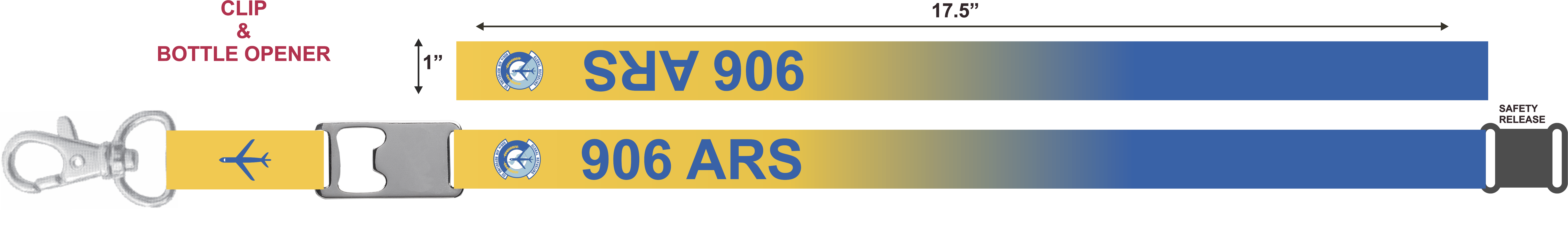 Scott AFB 906 ARS Lanyard - Blue to Yellow Fade, 906 ARS Patch with Blue 906 ARS Text