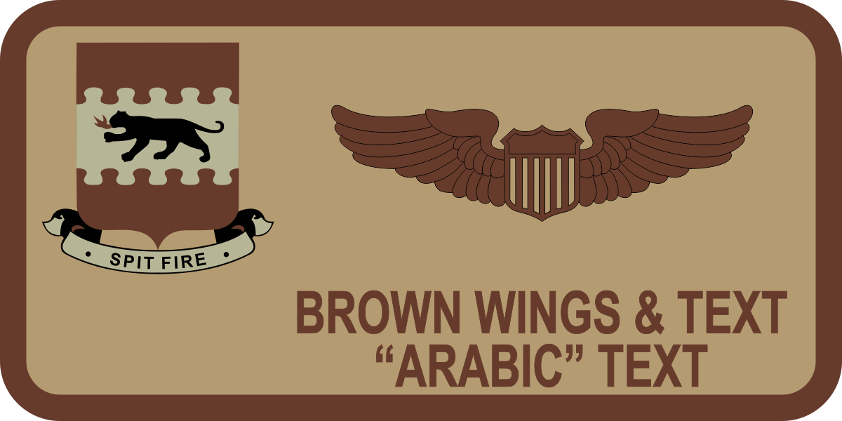 Seymour Johnson AFB 4 FW - Spit Fire Desert Name Tag -- Tan Background, Brown Border, Brown Wings & Text with Spit Fire Logo