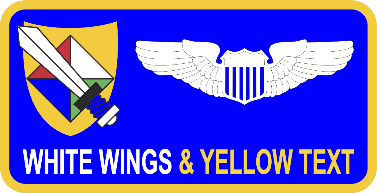 Seymour Johnson AFB 916 OG Name Tag - AF Blue Background with Yellow Border, White Wings and yellow Text, with Shield and Sword Logo