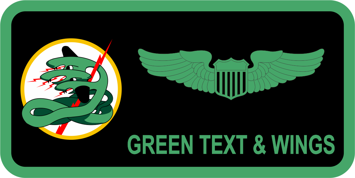 Sheppard AFB 459 FTS - Black Background, Green Border, Wings & Text, Snake Logo with Red Bolt