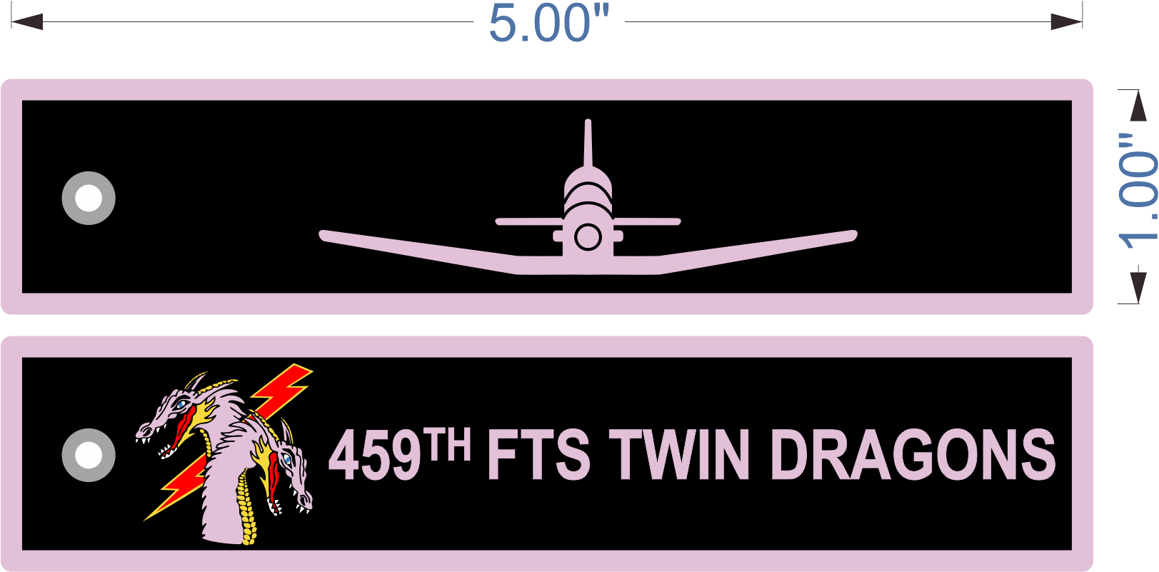 Sheppard AFB 459 FTS Twin Dragons Key Chain - Black Background, Pink Border, Dragon with Red Lightning Bolt with Pink Aircraft 5"