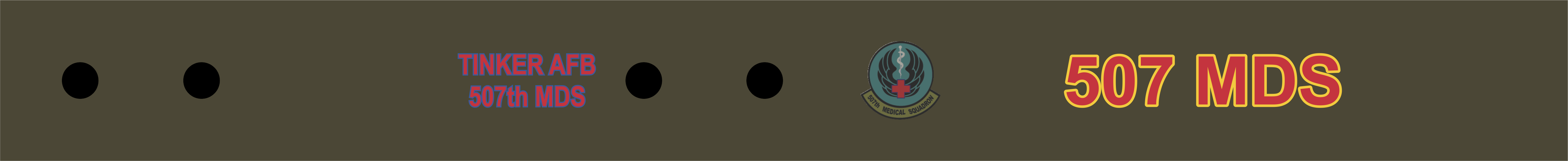 Tinker AFB 507 MDS Bag Tag Brown Background, Patch, Red Text with Yellow Outline, Pink Tinker AFB 507th MDS Text