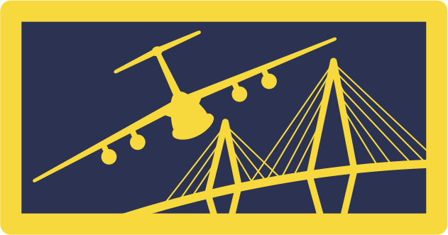 Travis AFB 312 AS Pocket Tab - Navy Background, Yellow C-5 Flying Over The Golden Gate Bridge, Yellow Border 2" with velcro