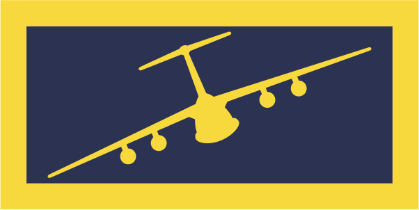 Travis AFB 312 AS Pocket Tab - Navy Background, Yellow Border & C-5 Aircraft 2" with velcro
