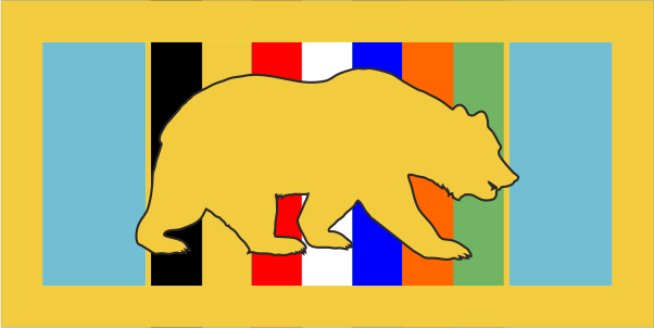 Travis AFB 60 OG - Pocket Tab - California Bear with Multi-Colored Stripes for the Background, Yellow Border 2" with velcro