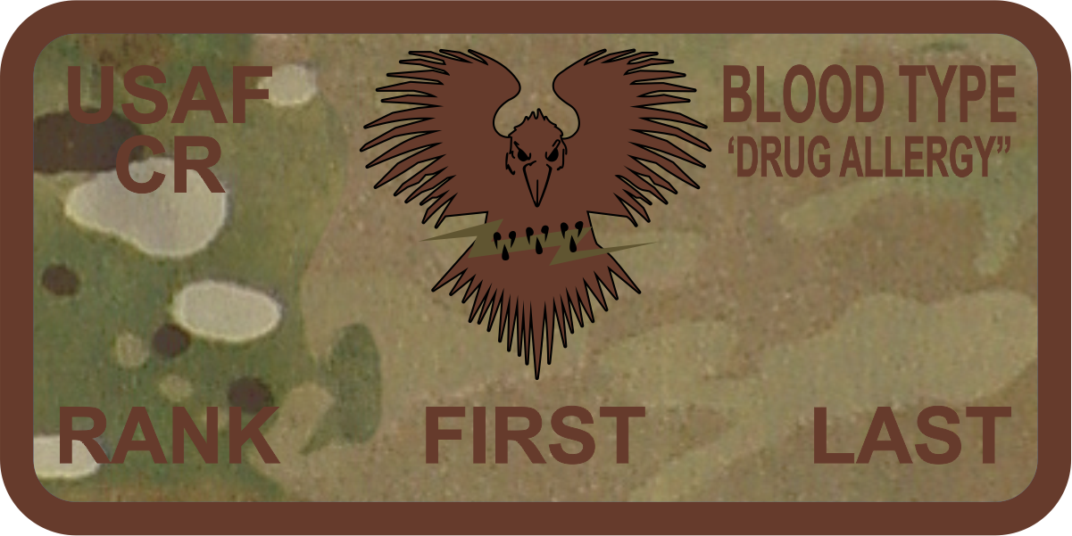 Travis AFB 821 CRG - Crow OCP Background with Brown Border, Brown Wings & Text with Crow with Lightning Bolt Logo