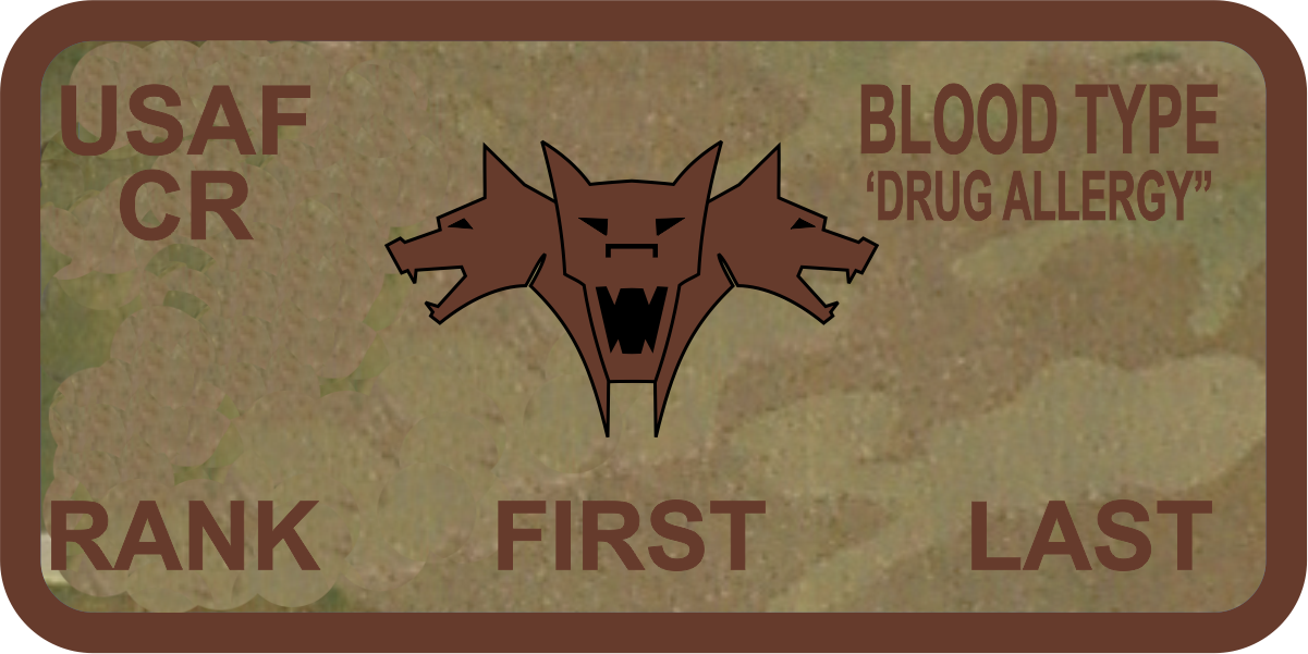 Travis AFB 821 CRS - Three-Headed Dog OCP Background with Brown Border, Brown Wings & Text with Three-Headed Dog Logo