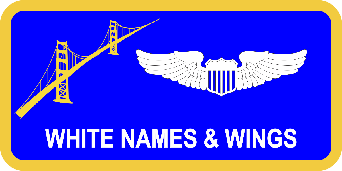 Travis AFB 349 OG  - Golden Gate Bridge Blue Background, Yellow Border, White Wings & Text, with Yellow Golden Gate Bridge