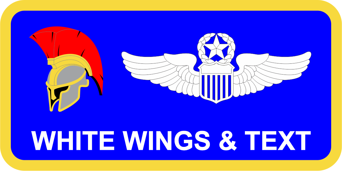 Scott AFB HQ AMC A3T - Name Tag -  AF Blue Background with AF Yellow Border, White Wings & Text, with Spartan Logo