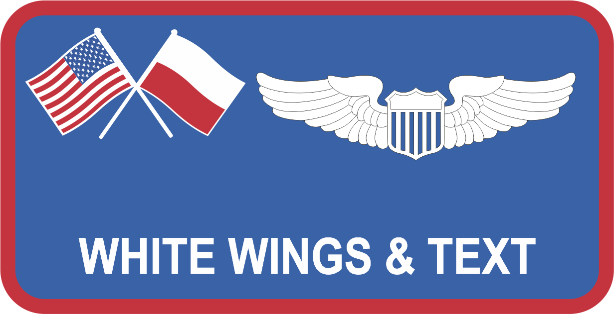 US Embassy Warsaw Name Tag - Blue Background, Red Border, American Flag with the Polish Flag, White Wings & Text