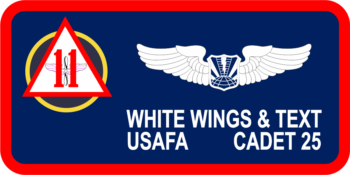 USAF Academy CS-11 - Name Tag - Navy Background, Red Border, White Wings & Text, CS-11 Logo
