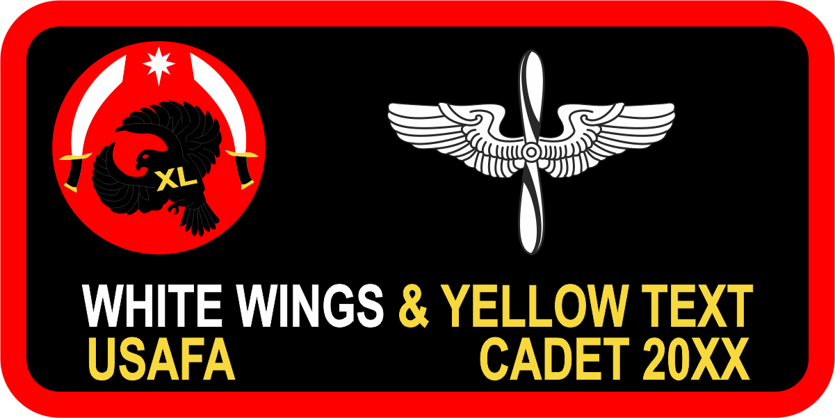 USAF Academy CS-40 Warhawk Name Tag - Black Background, Red Border, White Wings & Yellow Text, Red, Black Warhawk, White Swords, Yellow XL, Logo