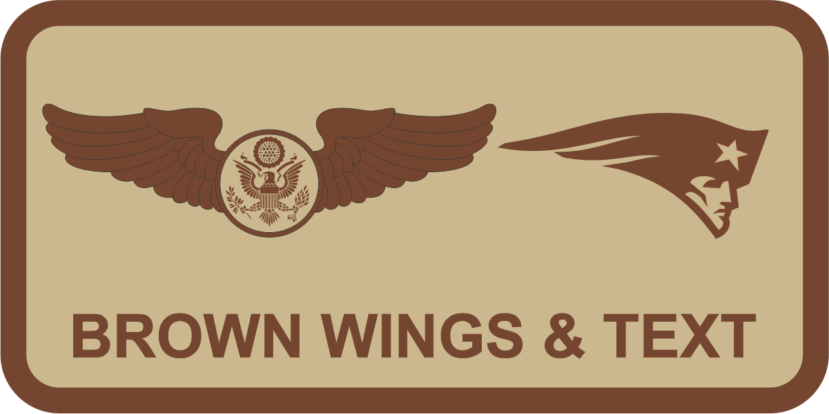 Westover AFB 439 AW Name Tag - Desert Background with Brown Border, Brown Wings & Text, Patriot Logo - PF729 Brown & Khaki/Tan