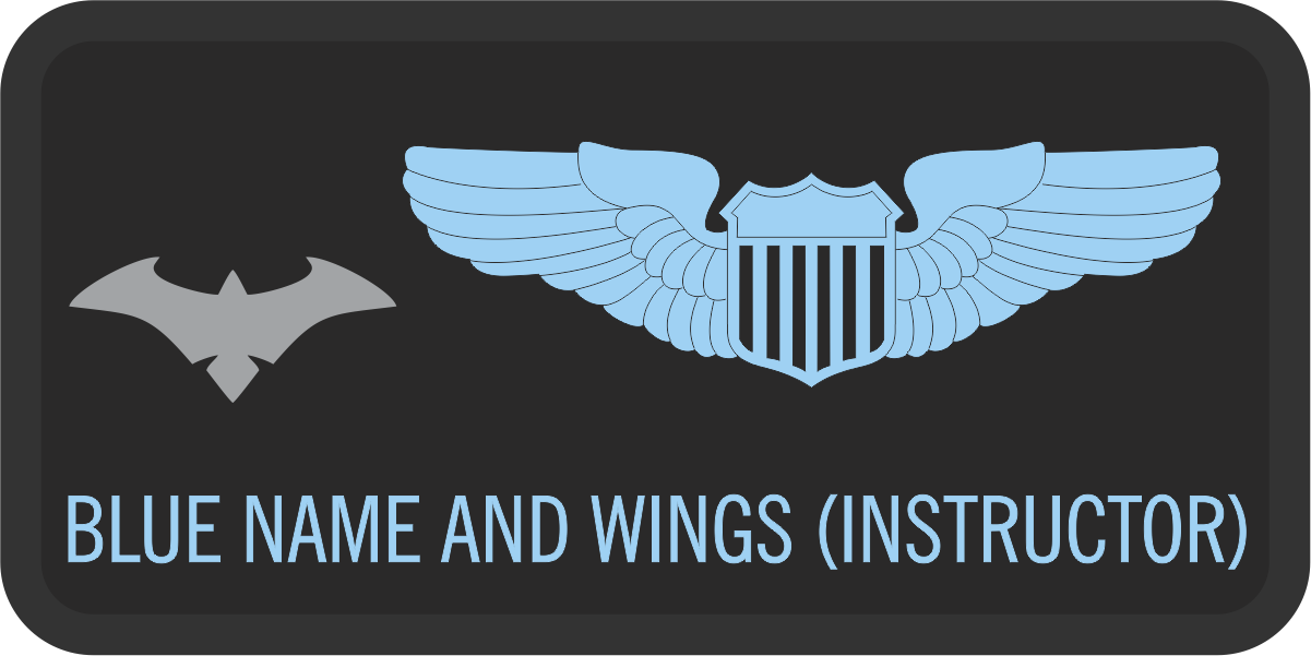 Beale AFB 9 OG Det 5 Name Tag (Instructor)- black background and border, light blue wings, and text with a light gray bat