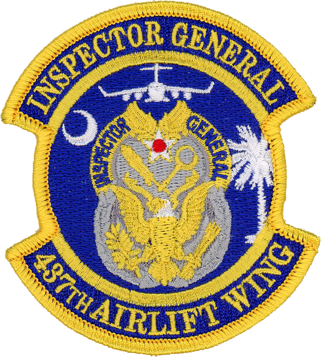 Charleston AFB 437TH Airlift Wing Inspector General 3.5" Patch
