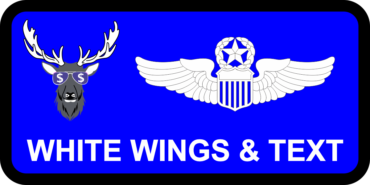 JM234 Blue Twill, FF900 Black Merrow, PF800 White Text, Wings