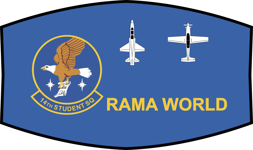 Columbus AFB 14 STUS Navy Visor Cover with a Black border, a "T-6" (Top view), a "T-38" (Top view) and the "14TH Student SQ" Patch. Our Visor Covers Are Sublimation Dye Printed On A Microfiber Polyester Gaming Table Felt, To Give You Crisp, & Colorful Graphics.