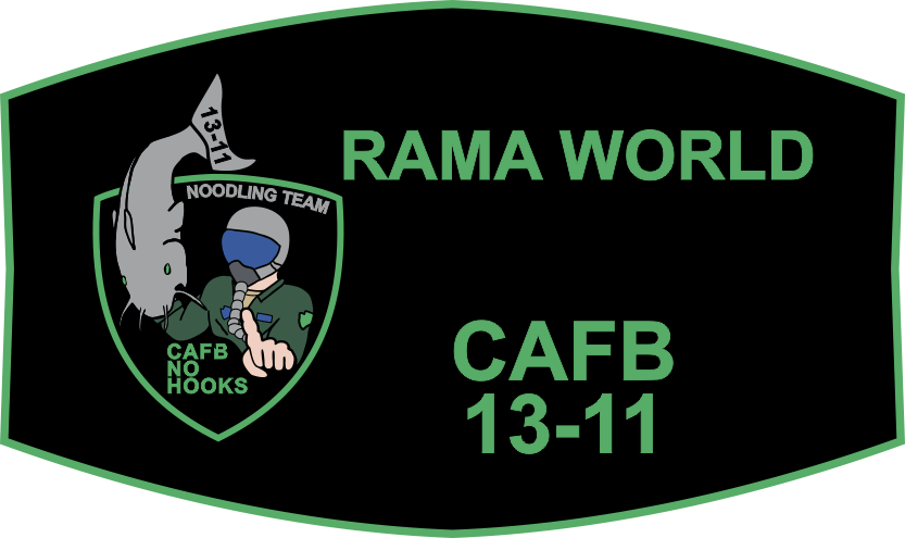 Columbus AFB Class 13-11 Black Visor Cover with a Green border, "CAFB 13-11" text, and "CAFB No Hooks Noodling Team" Patch. Our Visor Covers Are Sublimation Dye Printed On A Microfiber Polyester Gaming Table Felt, To Give You Crisp, & Colorful Graphics.