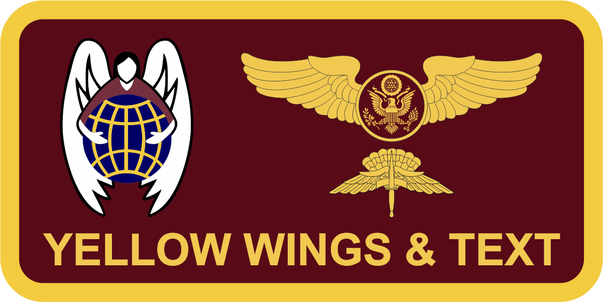 Davis-Monthan AFB 48 RQS Friday Hawk Name Tag - Maroon Background, Yellow Border, Angel holding a Navy globe Logo with Yellow Wings & Text
