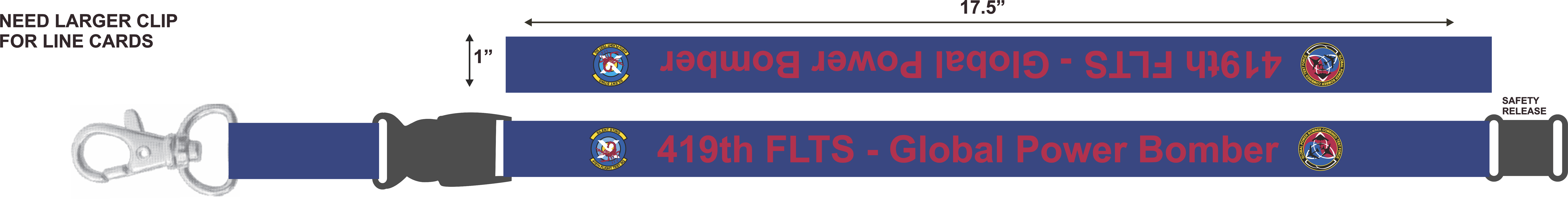 Edwards AFB 419 FLTS Lanyard, Blue Background, 419th FLTS - Global Power Bomber with Patches - with Quick Safety Release