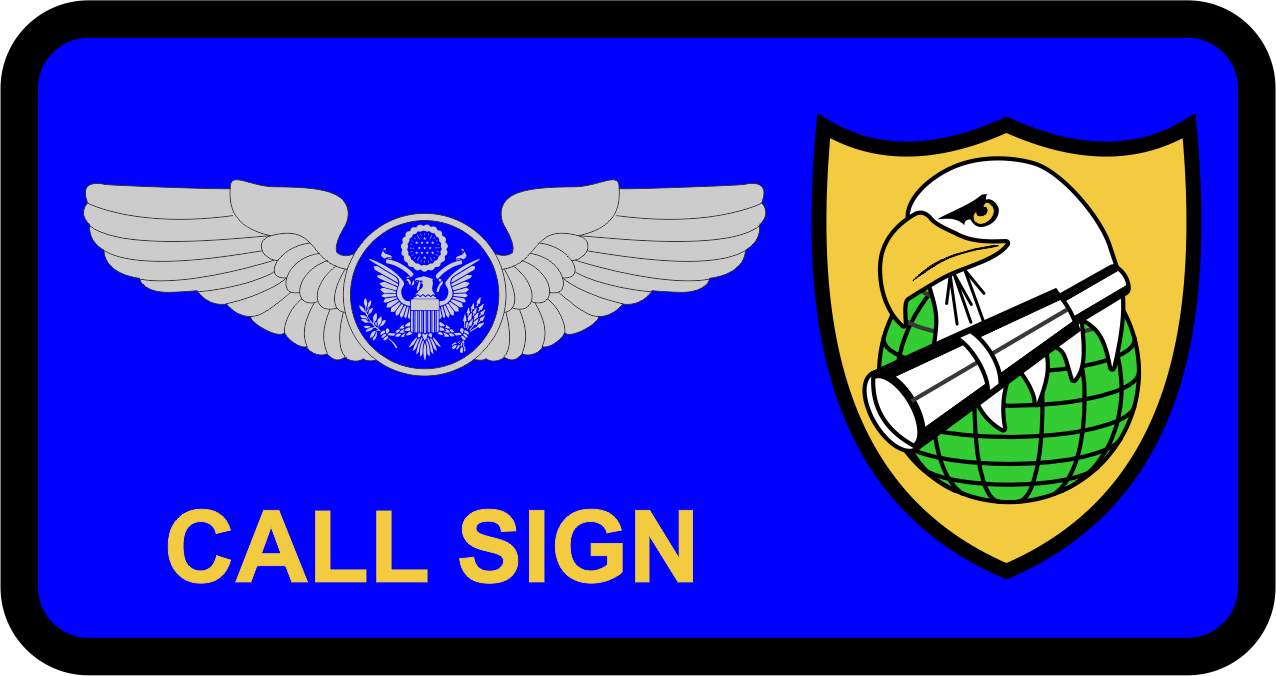 Elmendorf AFB 962 AACS Friday Name Tag - AF blue background, black border, gray wings, AF yellow text eagle, globe and periscope within shield logo.