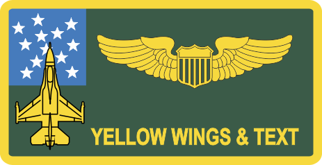Vermont ANG 134 FS / 158 FW- Green background, yellow border, yellow wings and text with blue and white stars, F-16 logo