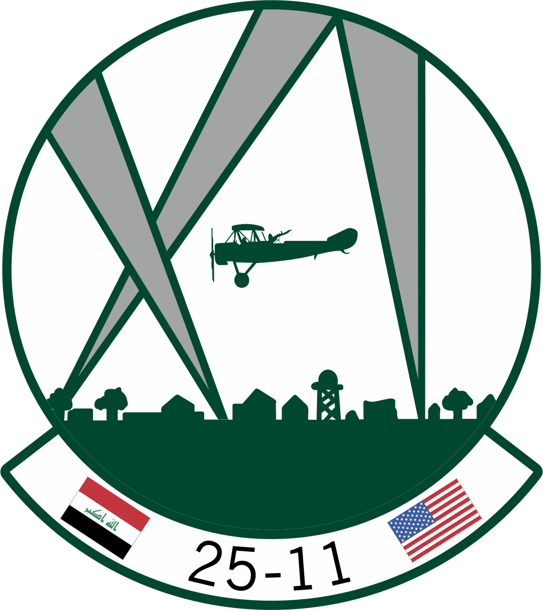 Laughlin AFB 87th FTS Class 25-11 - Green Background, Green Border, Green T-38 Aircraft, Iraq & American Flags with Sublimation Patch 4"