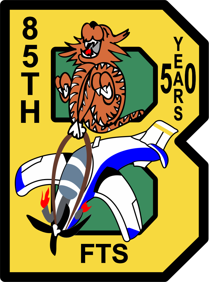 Laughlin AFB Tiger B Flight - 85th FTS 50 Year Anniversary, Orange Tiger, Blue, White & Black Aircraft 3.5"