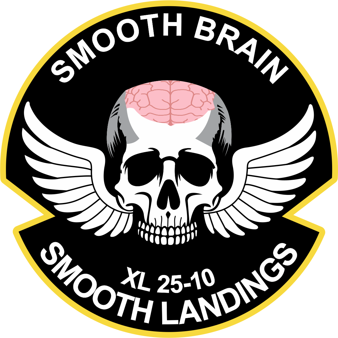Laughlin AFB A Flight - Smooth Brain Smooth Landings XL 25-10 Class, Black Background, Yellow Border, White Skull, Pink Brains, White Wings & Text - 3.5" Patch