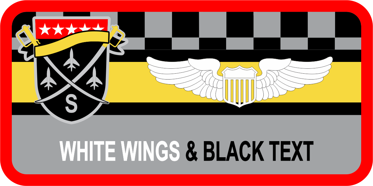 Laughlin AFB, 434 FTS Name Tag - Gray Background Red Border, Black/Gray Checkerboard, White Wings & Black Text, with Shield Logo