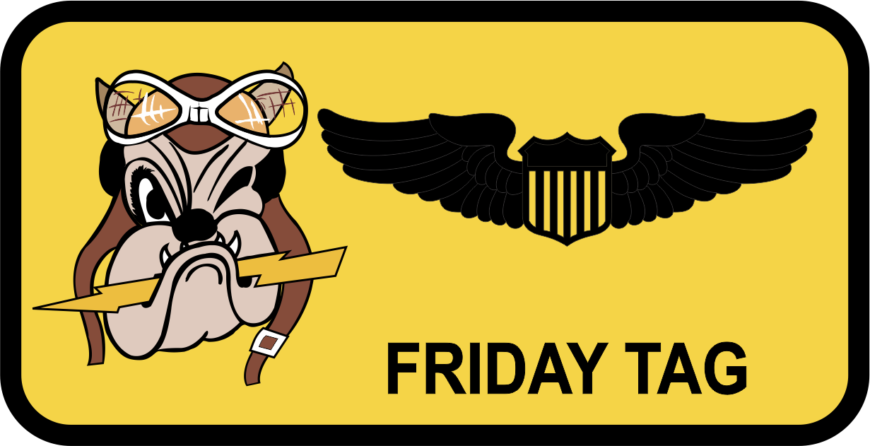 Luke AFB 61 FS Friday Name Tag- Yellow background, black border, black wings and text with F-35 head-on view aircraft 100% embroidered
