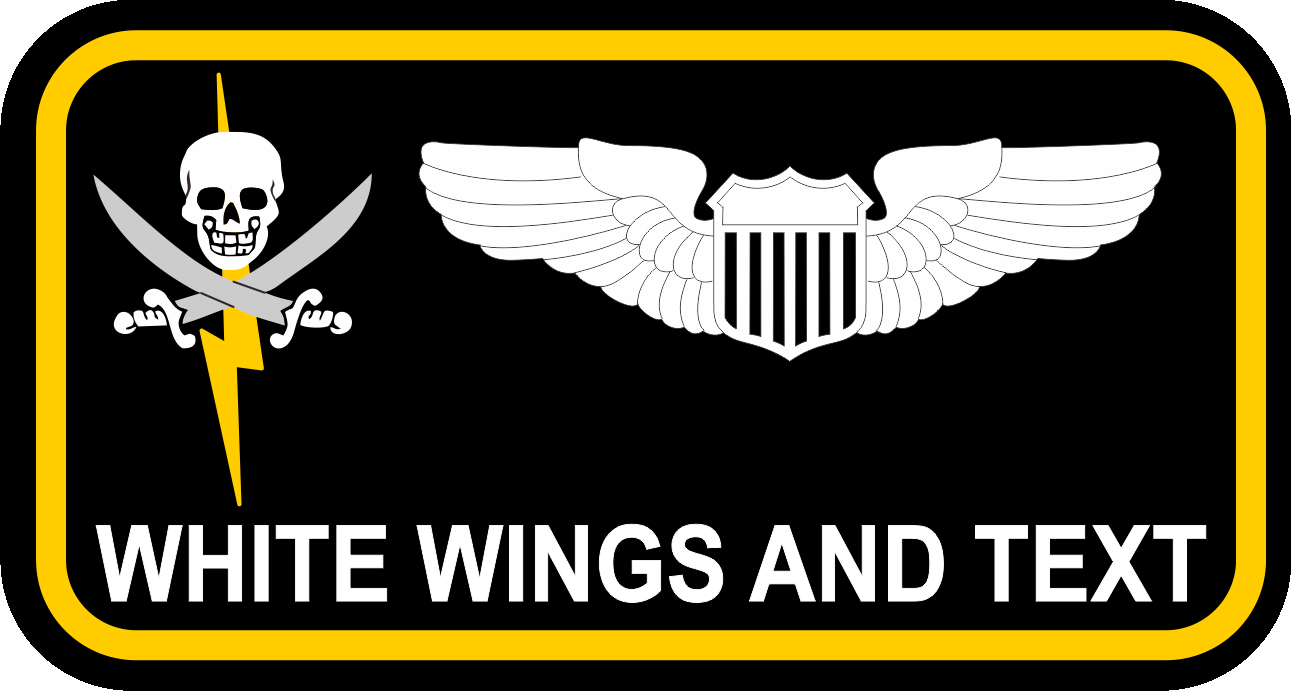 MacDill AFB 91 ARS Name Tag - Black background, yellow border, leather backing, white wings and text with a skull, sword and lighting bolt logo