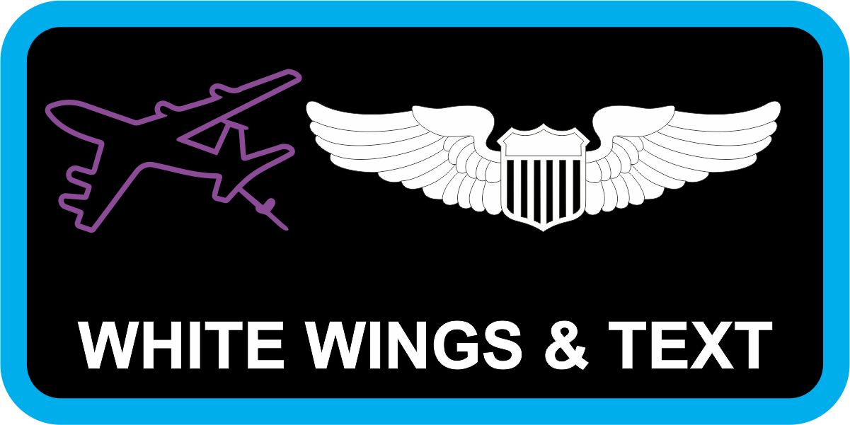 MacDill AFB 91 ARS KC-135 Name Tag - Black Background, Blue Border, Purple KC-135 Boom Down Aircraft, White Wings & Text, Optional Leather Backing