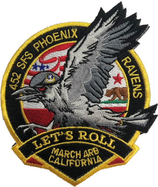 March ARB 452 SFS Phoenix Ravens Let's Roll 4" Full Color Patch