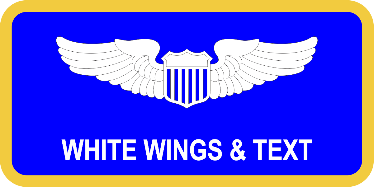 Maxwell AFB 42 ABW Name Tag - Blue Background, AF Yellow Border, White Wing & Text with Optional Leather Backing