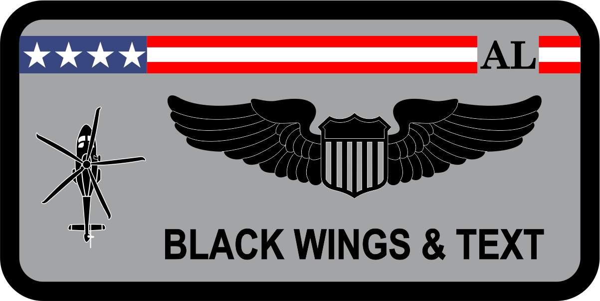 Maxwell AFB 908 OG Name Tag - Gray Background, Black Border & Helo, White Stars over Blue, Red & White Stripe, Black Wings & Text with Optional Leather Backing