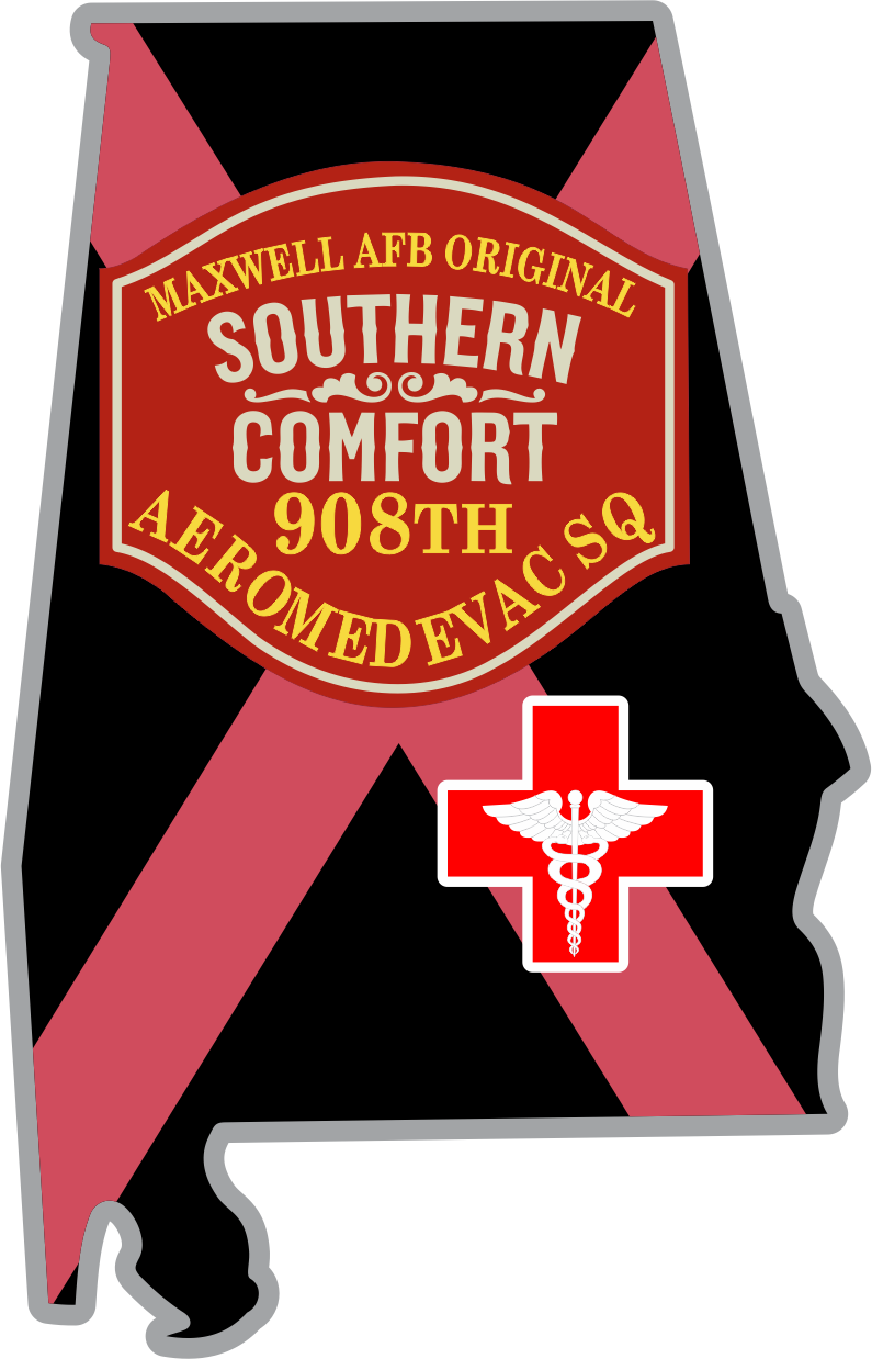 Maxwell AFB Original Southern Comfort 908th Aeromed Evac Sq, with Red Cross and Caduceus 4" with Sublimation