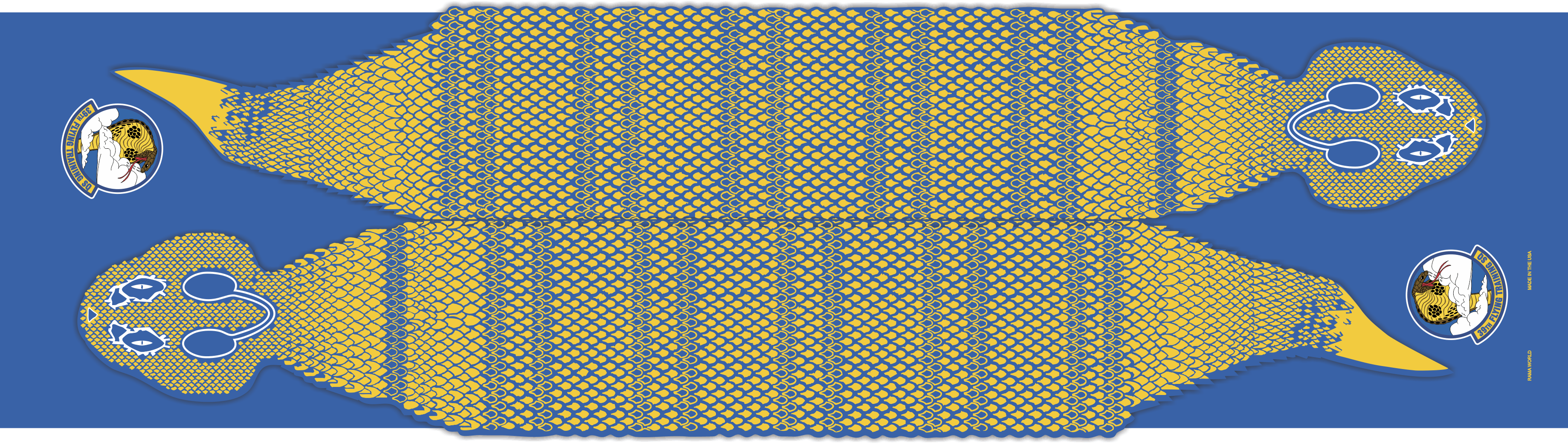 Randolph AFB 39 FTS Flight Scarf- Blue body with a yellow and blue full body cobra snake over the body of the scarf, 39 FTS patches at the ends. size 6"x48"