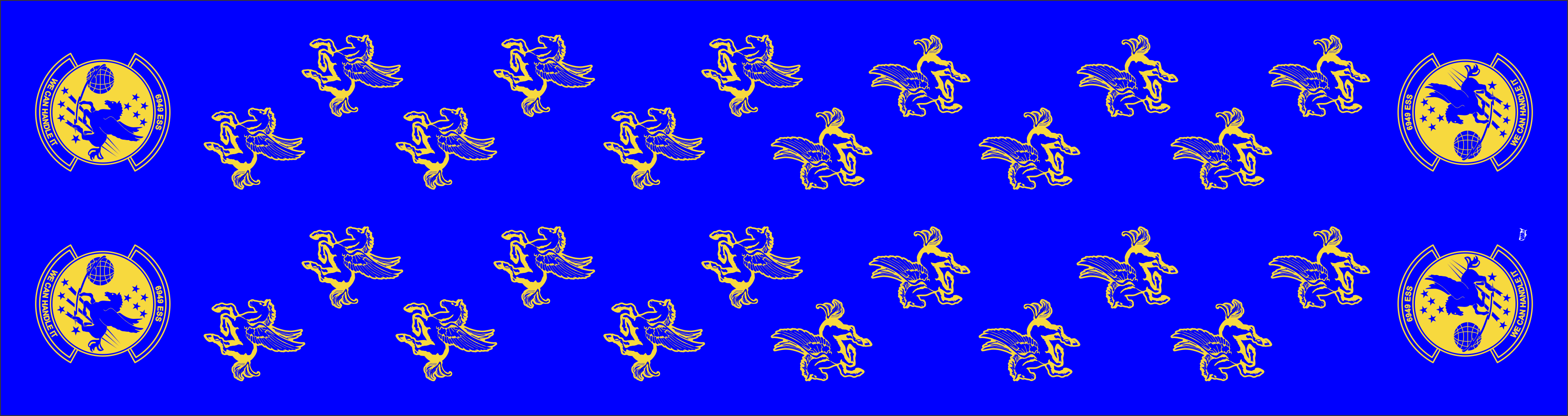 Offutt AFB 82 RS Pegasus Flight Scarf with AF Blue background, Pegasus emblem through out scarf & patches on the ends. Size: 6" x 48".