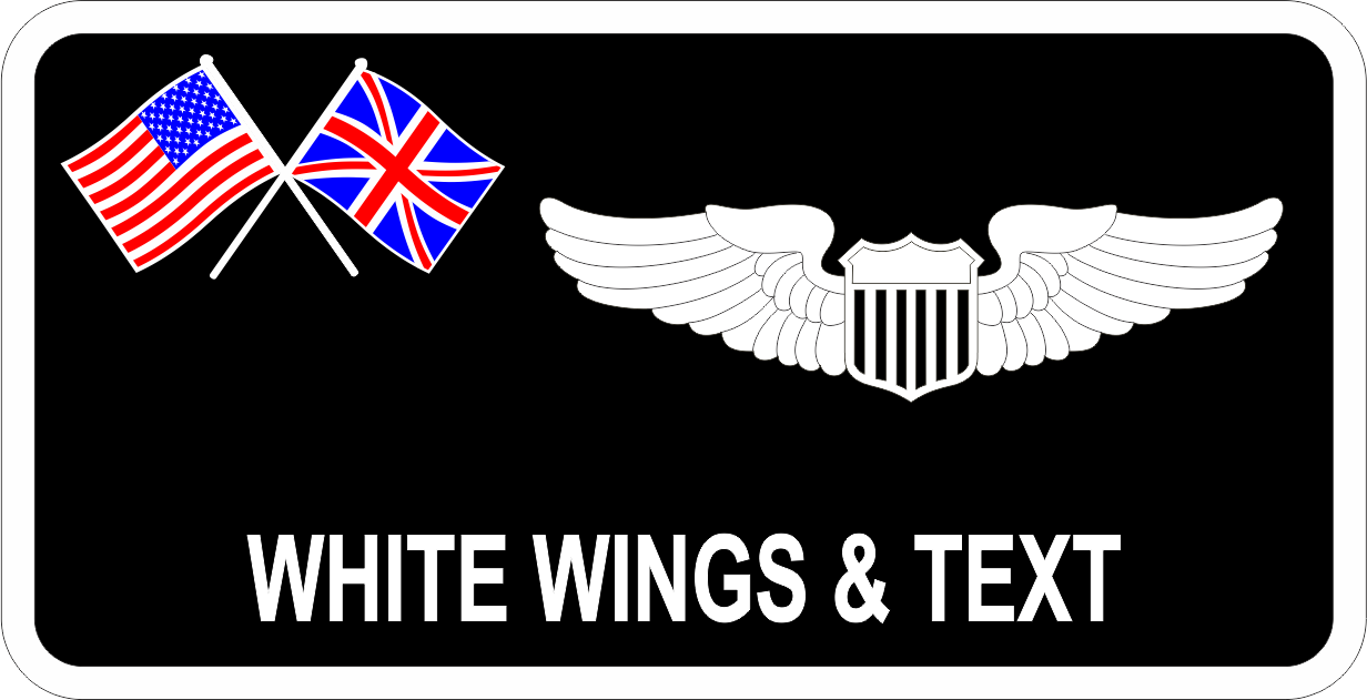 RAF Mildenhall 351 ARS Name Tag - Black Background with White Border, Wings & Text, with American Flag and UK Flag