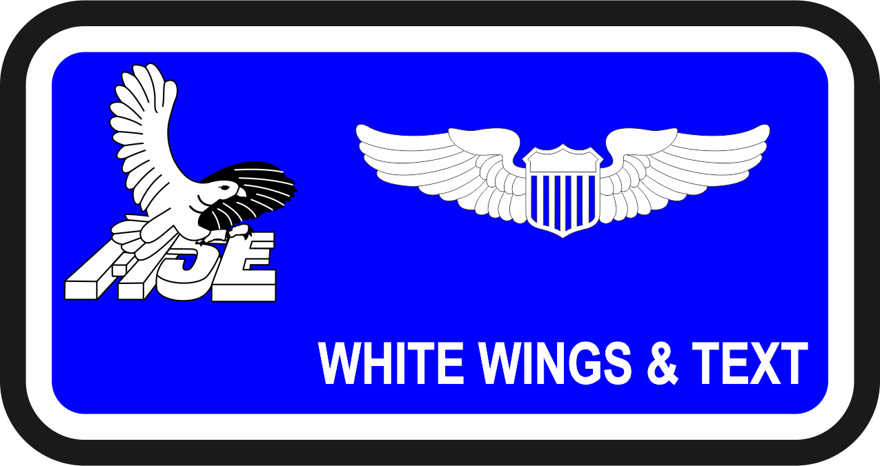 Seymour Johnson AFB 4 TS F-15E Eagle Name Tag - AF Blue Background with White Border, Wings & Text, with White/Black F-15E Eagle Logo - Optional Leather Backing