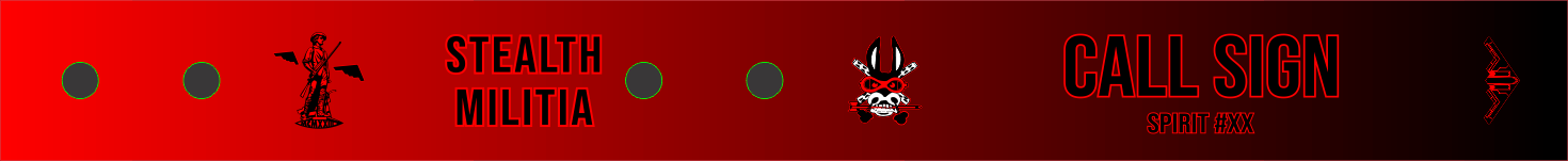 Whiteman AFB 110 BS Stealth Militia Bag Tag. Red and Black Fade Background With the Minuteman Emblem and "Stealth Militia" Text In-Between Snaps, SQ Emblem on the Left of Call Sign, B-2 Aircraft on the Far Right and Spirit # Below Call Sign. Our Standard Size Measures 13.55" x 1.5" When Snapped.
