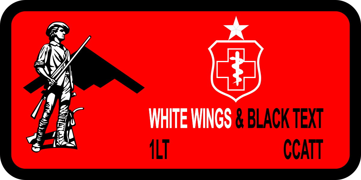 Whiteman AFB 131 MDG- Name Tag -- Red Background, Black Border, White Wings & Black Text with Minuteman B-2 Logo