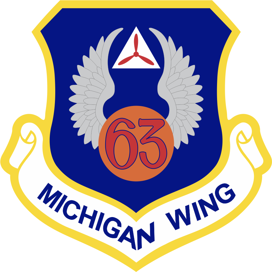 Civil Air Patrol Michigan Wing, Blue Background, Yellow Border, Gray Wings, 63 in Center, Full Color Patch 3"