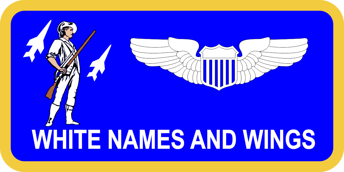 Andrews AFB DC HQ ANG- AF blue background, AF yellow border, white wings and text with a minute man logo