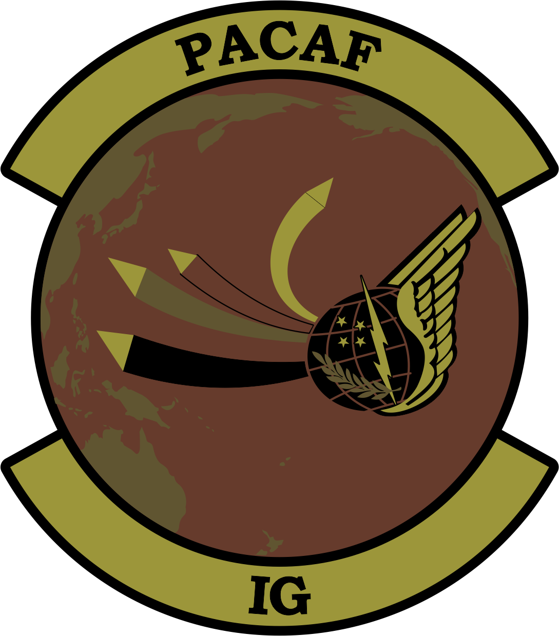 Hickam AFB HQ PACAF IG - Inspector General - Brown Background, Black Border, with Globe, Wings PACAF Logo 4" with velcro OCP