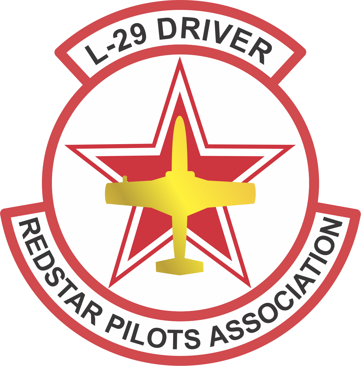 Redstar Pilots Association - L-29 Driver Patch Red, Black, and White, Yellow Aircraft, Red Star in Center, 3.5" Patch